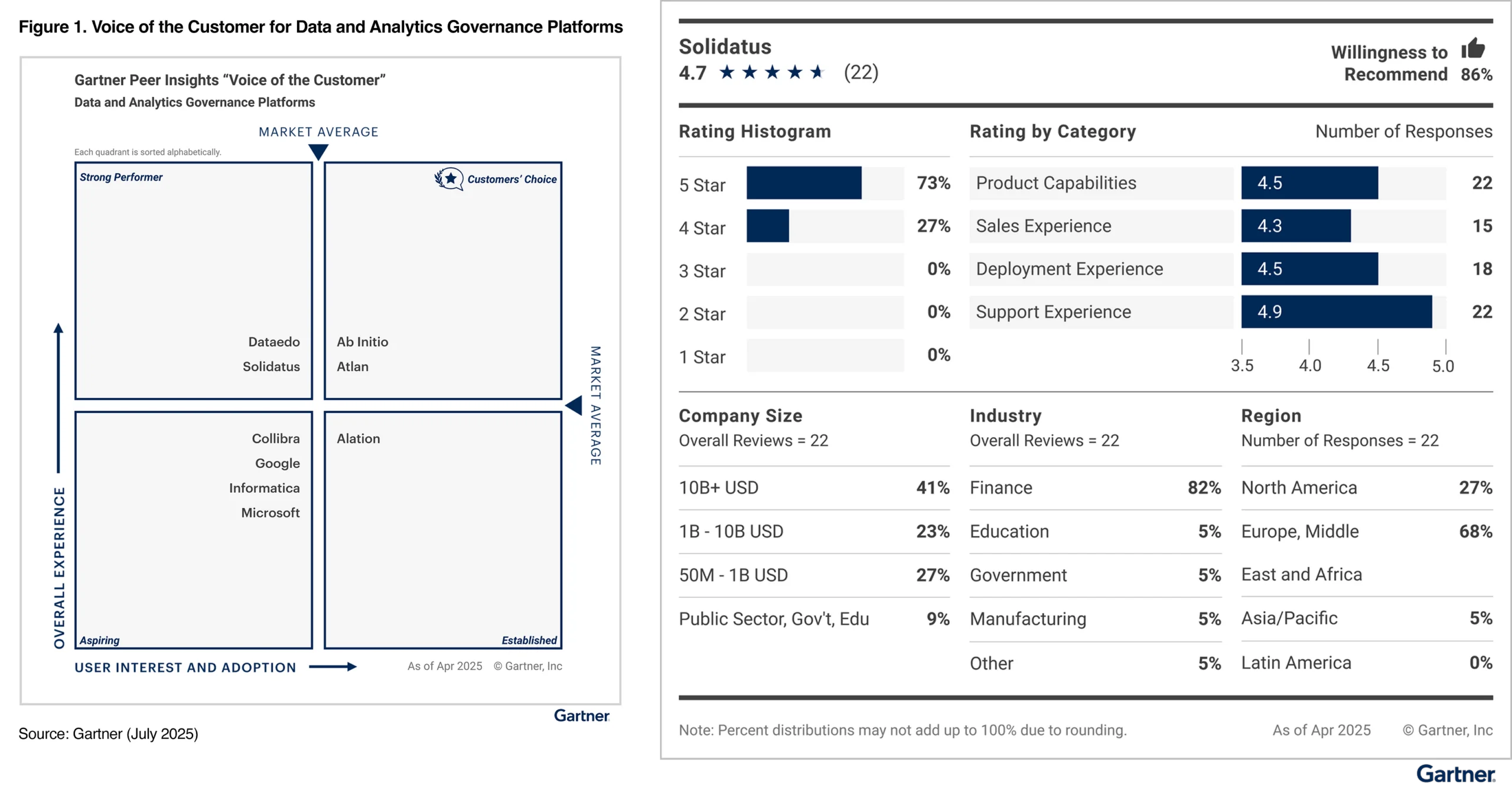 Solidatus was recognized by customers as a Strong Performer in the July 2025 Gartner® Peer Insights™ “Voice of the Customer”: Data and Analytics Governance Platforms [insert link to the reprint].